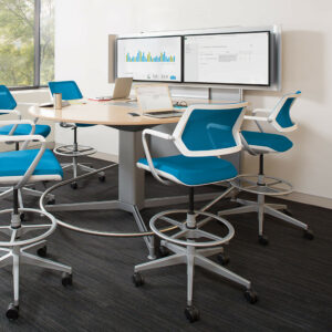 There are two categories of office stools ergonomic office stools and side stools. A side stool is typically chair height. Most side stools are not height adjustable. They are lightweight and easy to move. Side stools are designed to be pull-up, collaborative seating. They are perfect for creative conversations in front of a single monitor. Ergonomic office stools are designed to sustain long periods of work. They are adjustable and ergonomically sound.